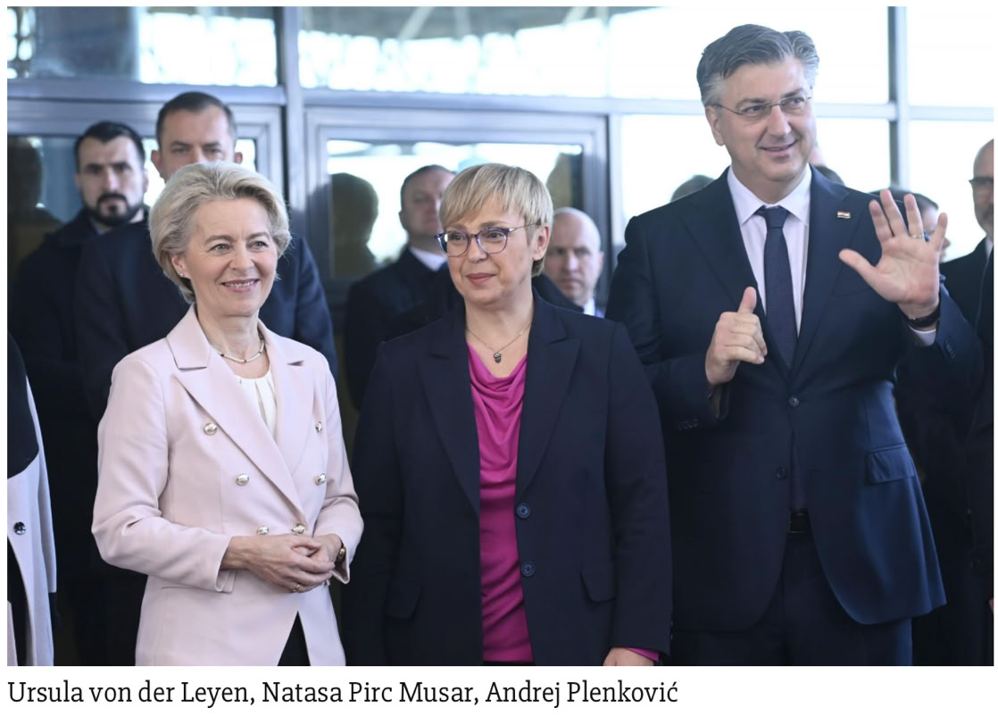 Ursula von der Leyen izrazila je oduševljenje I sreću: Danas nema boljeg mjesta u Europi gdje bi se mogao slaviti novi početak i jedinstvo Europe, poručila je predsjednica Europske komisije. My dear, happy New year uskliknula je radosno Ursula von der Leyen premijeru Andreju Plenkoviću koji ju je dočekao na graničnom prijelazu Bregana povodom ulaska Hrvatske u Schengenski prostor.