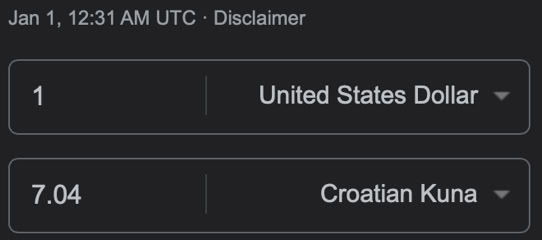 Vrijednost Hrvatske Kune na današnji dan, 1 Siječnja 2023 godine,