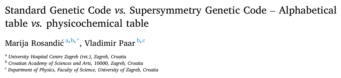 CROATIAN SCIENTISTS MARIJA ROSANDIC AND VLADIMIR PAAR DISCOVERED A SUPERSYMMETRY OF THE GENETIC CODE