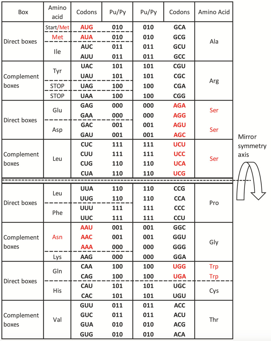 pyrimidine multiseries network is the essential basic symmetry of the SSyGC table which remained unchanged throughout the entire evolution.