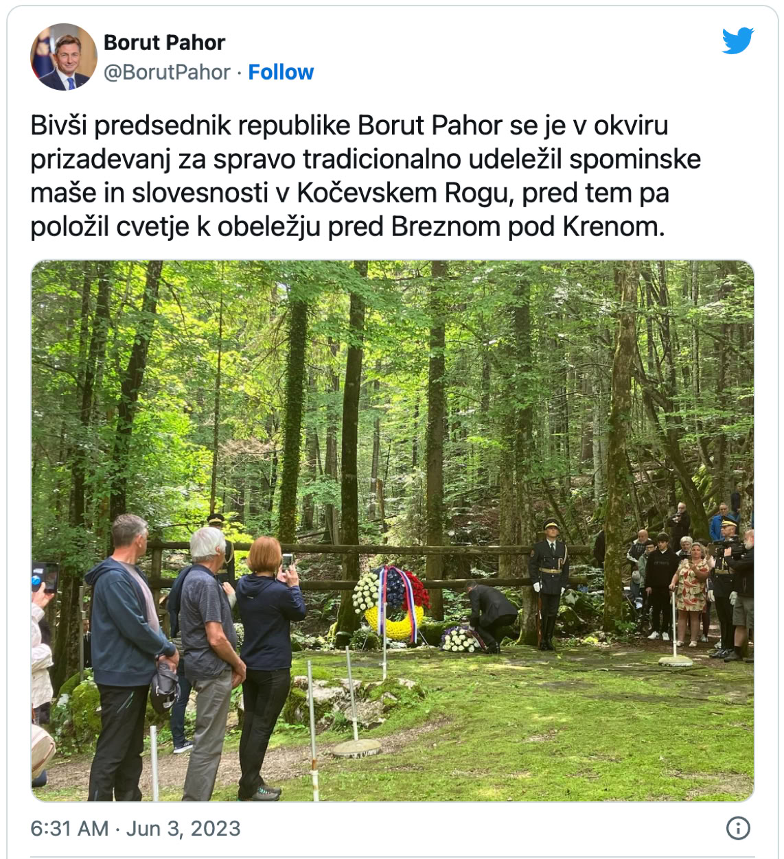 The commemoration was attended by the ex-president of the Republic of Slovenia Borut Pahor and ex-premier Janez Janša.