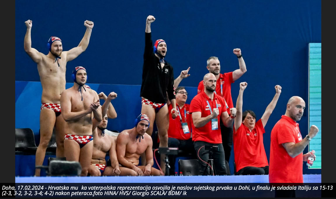 Hrvatska muška vaterpolska reprezentacija trijumfalno je okončala naporan početak 2024. godine, nakon srebra na Europskom prvenstvu osvojenog prije mjesec dana u Zagrebu, u subotu je u Dohi stigla kruna sveg rada, pripremanja i odricanja, osvajanje naslova svjetskog prvaka.