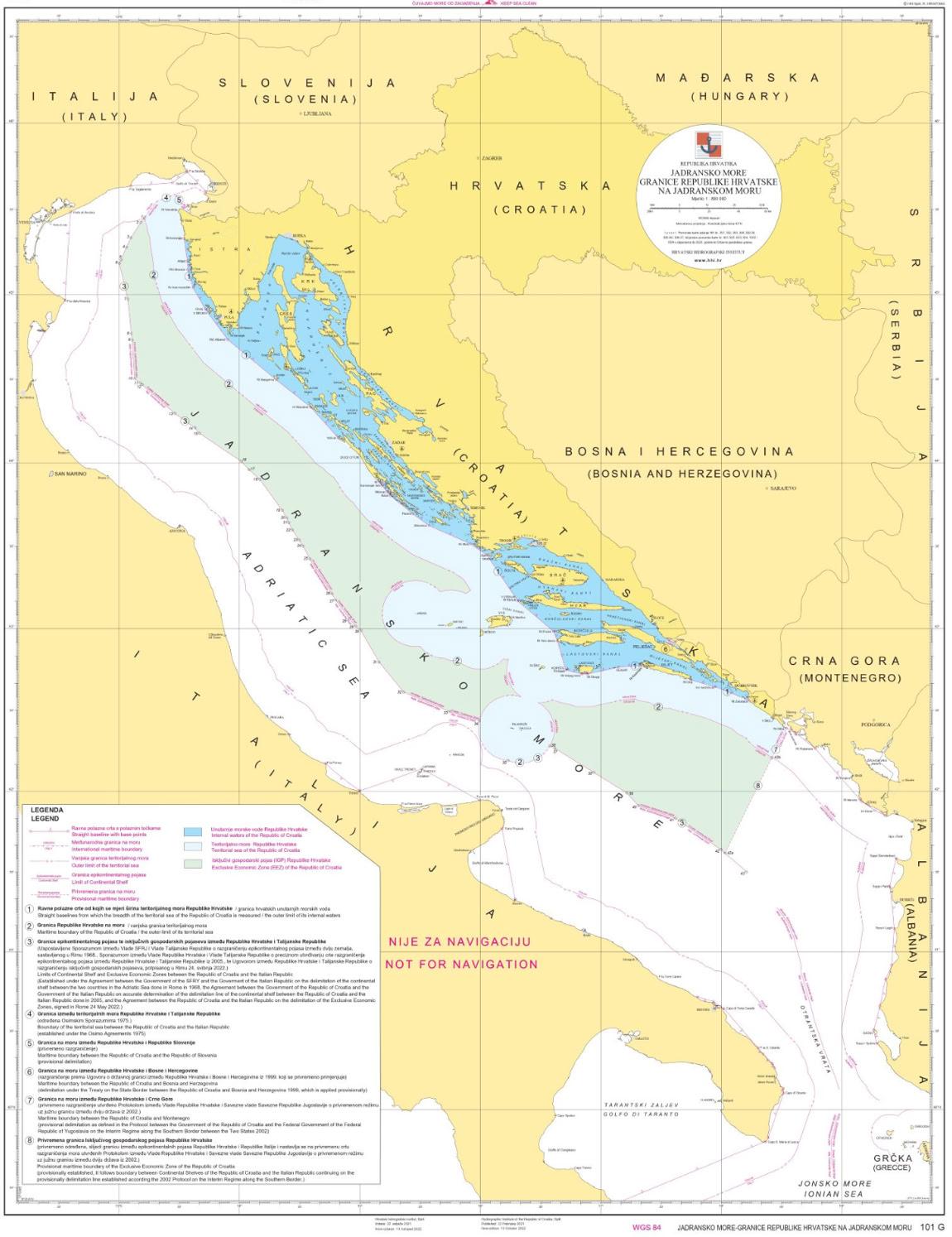 „Ugovorom između Republike Hrvatske i Talijanske Republike o razgraničenju isključivih gospodarskih pojaseva iz 2022., kojim je kao crta razgraničenja utvrđena crta koja slijedi već postojeću crtu razgraničenja epikontinentalnih pojaseva (morskoga dna i podzemlja) dviju država, osigurano je da je crta razgraničenja koju je Hrvatski sabor 2021. pri proglašenju Isključivoga gospodarskoga pojasa proglasio kao privremenu, sada postala trajna i konačna crta razgraničenja na moru između Republike Hrvatske i Talijanske Republike.“