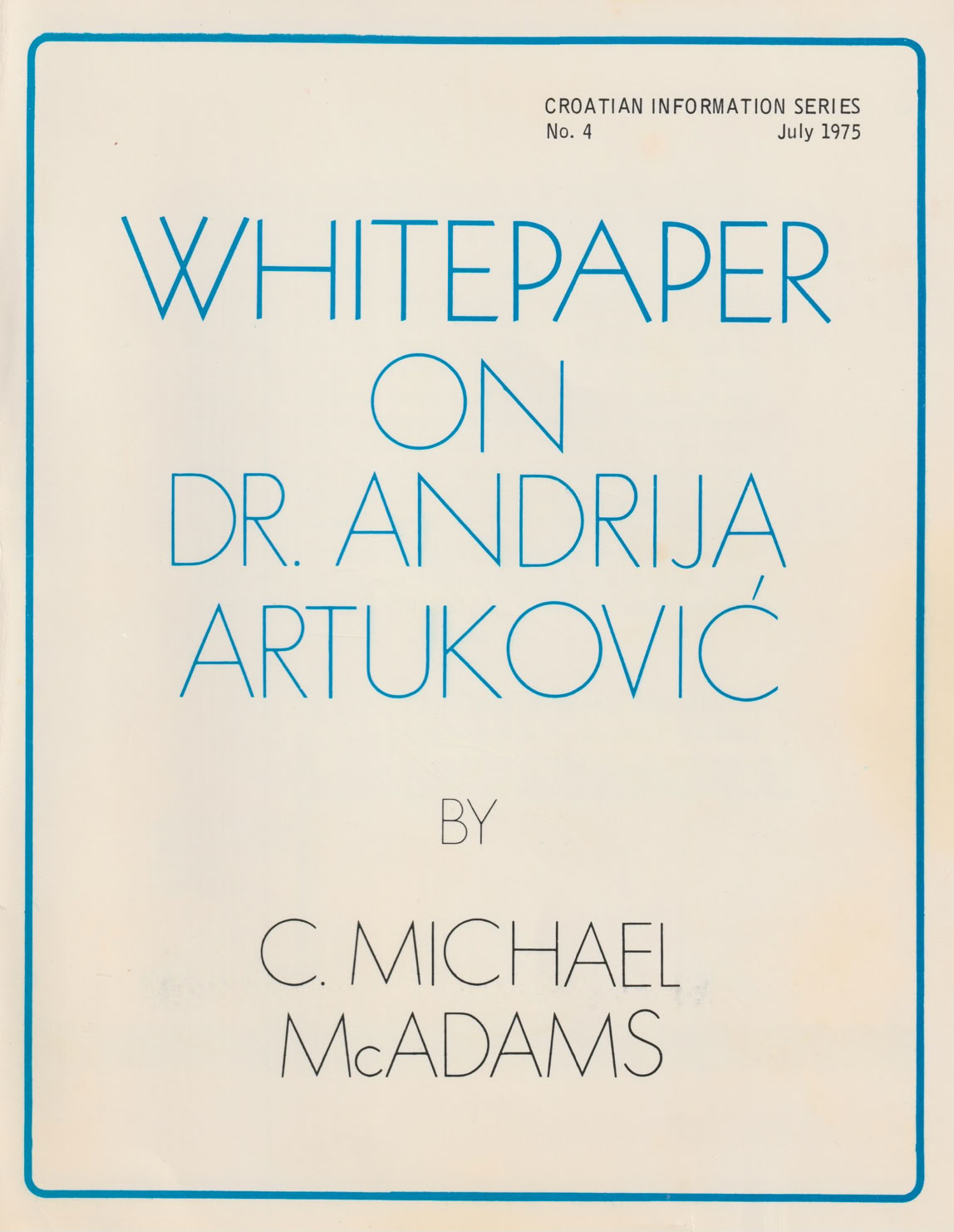 Fifty years ago, the Croatian Information Service (CIS), a pro-bono information agency, released a background report on the case of Dr. Andrija Artukovic (CIS Series’s 4, July 1975). The report was written by CIS co-founder and contributor C. Michael McAdams and was titled, “Whitepaper on Dr. Andrija Artukovic“.