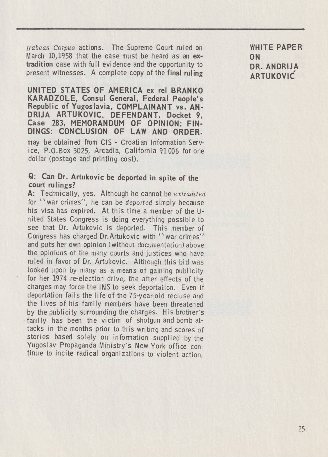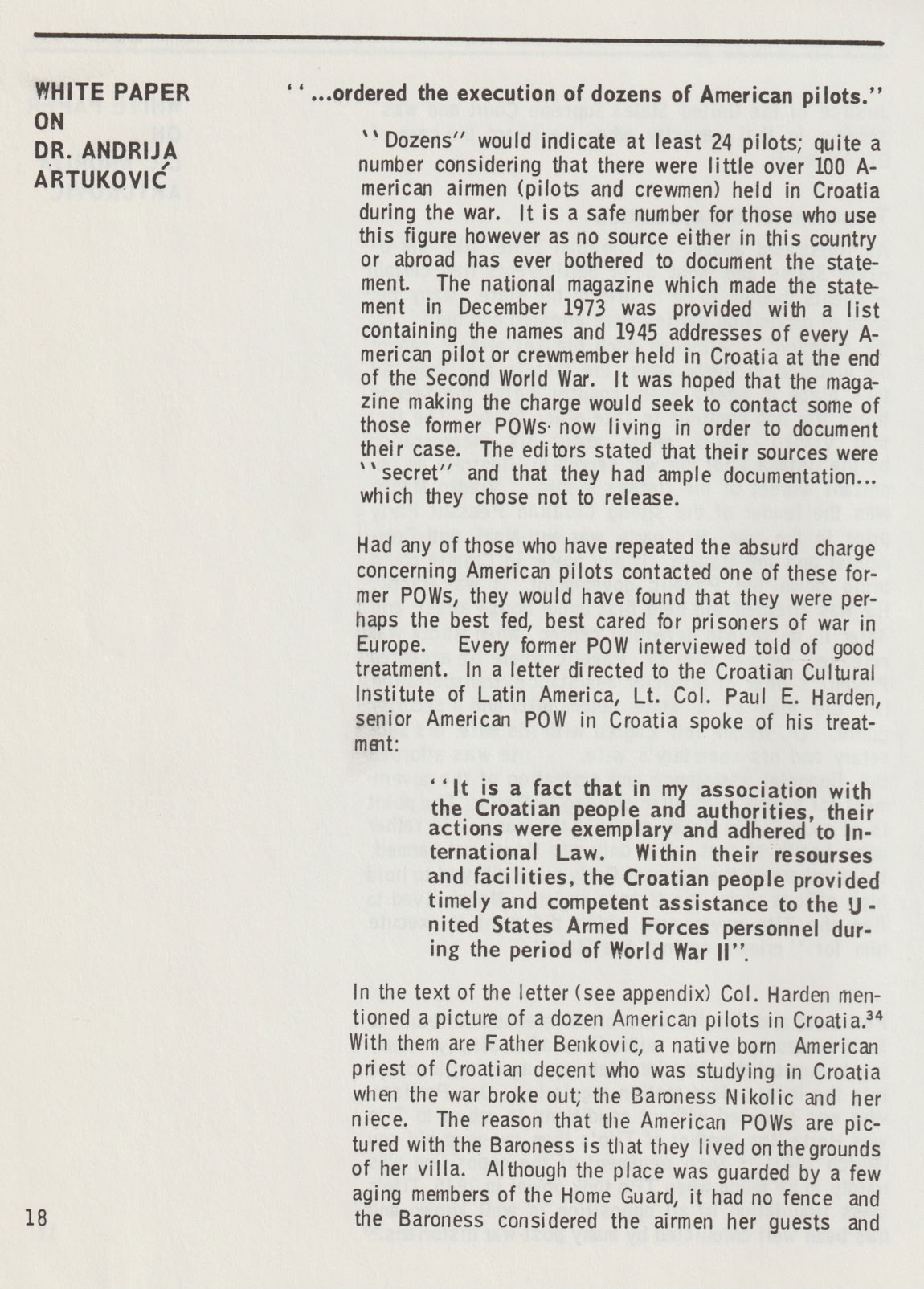CROATIAN INFORMATION SERIES No.4 July 1975. CONTINUATION from Chapter No. 1