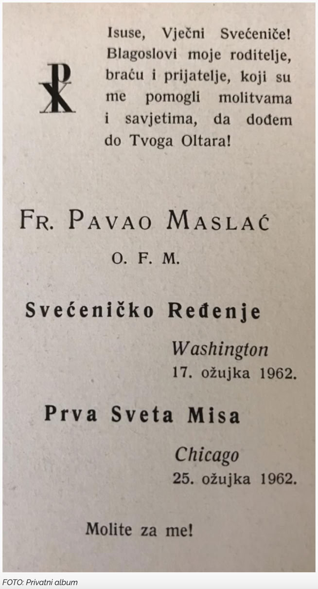 Sedam desetljeća života u Americi slavi fra Pavao Maslać, čovjek koji svoju obitelj nije vidio 23 godine. Otac je na Radio Vatikanu doznao da mu je sin zaređen za svećenika.