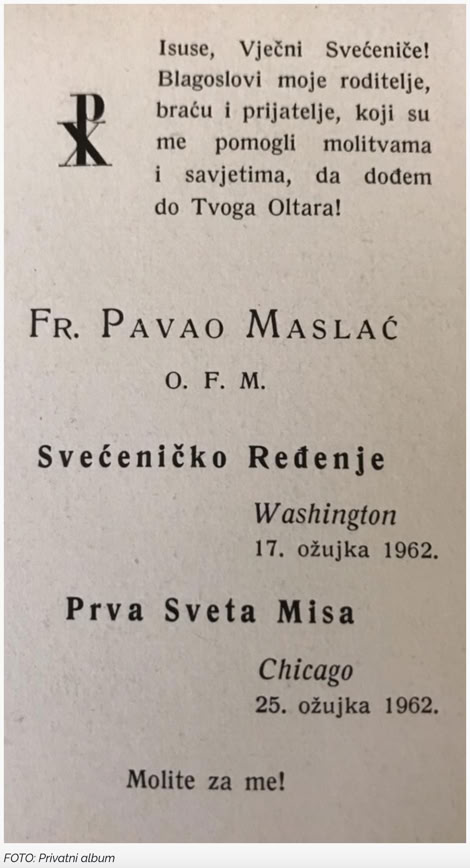 In the group that left Austria with Fr. Paul were also Fr. Jozo Abramović, some men and women by the name of Marić, Vrban, Grgo Musa, Gavranović, Andrija Urban, Dinko Krpan, Agata Primorac, Dragica Gagro and others.