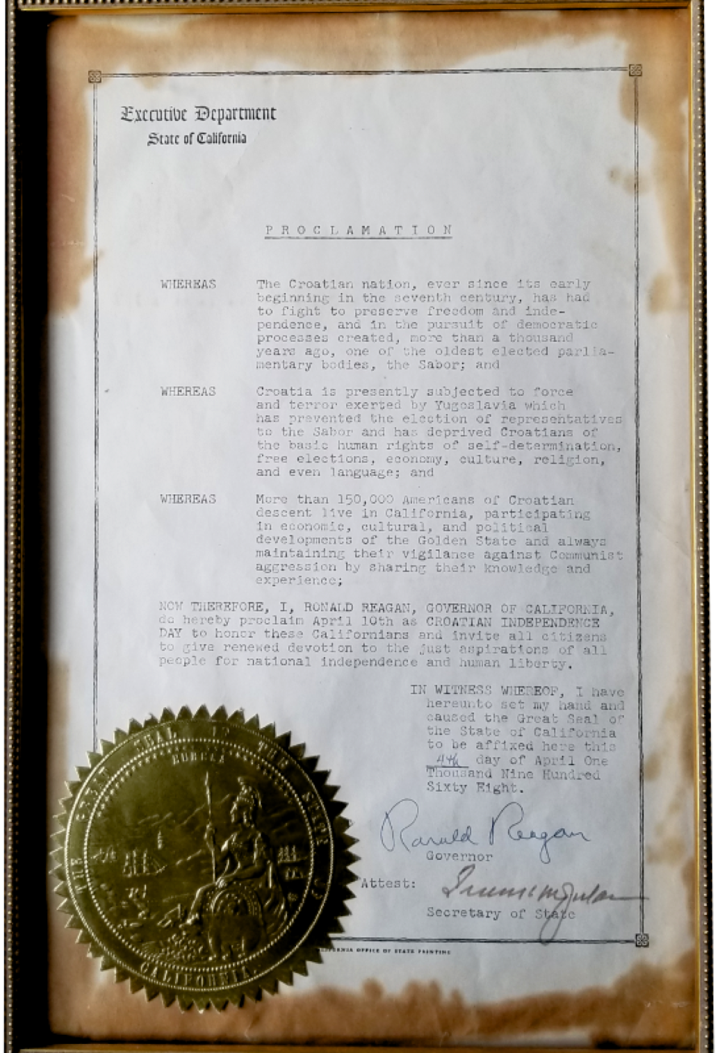 4 th of April of this year marked a pertinent formal signing of a document in the city of Sacramento, California, 54 years ago. The year was 1968. In the native Croatian homeland there were captivating debates among the students, workers and intellectuals. The Declaration on Language which had galvanized every person who understood its depth and meaning had not yet attained its first year of life. None of the patriots like Budiša, Čičak, Veselica or Gotovac even suspected that soon they would be paraded through communist state
