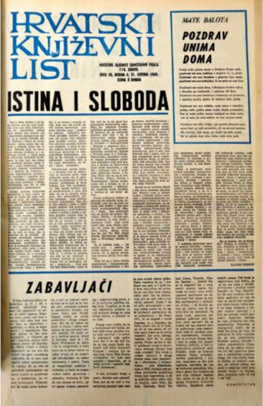 Osnivač i urednik Zlatko Tomičić je u razgovoru s povjesničarem Tomislavom Jonjićem rekao da je list cijelo vrijeme bio metom napada, pri čemu je u tome kao najgrlatijeg i najsirovijeg prozvao Igora Mandića za kojeg se onda govorilo da je navodno bio trubom CK SKH, a na drugom mjestu po napadima je prozvao Dražena Vukova Colića. U tekst su ušle i neke teze dr-a Franje Tuđmana. Zanimljiva je teza urednika ovog lista Zlatka Tomičića u kojoj je optužio Savku Dabčević Kučar da je bila protiv HKL-a te njegova uvjerenost da je vodstvo KPH ugasilo ovaj list kao svoj taktički potez.