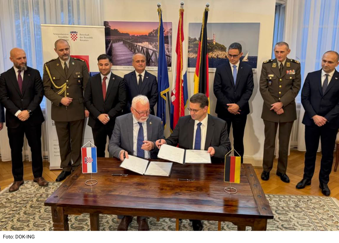 U Berlinu su se u ponedjeljak dogodila dva, u tišini dugo pripremana vrlo važna poteza za modernizaciju Hrvatske vojske i za daljnji razvoj zagrebačkog DOK-ING-a, koji je svjetski lider u proizvodnji besposadnih sustava za razminiranje. Potpisivanje sporazuma o suradnji okupilo je i hrvatskog ministra obrane i potpredsjednika Vlade Ivana Anušića, njegovog njemačkog kolegu Borisa Pistoriusa, načelnika Glavnog stožera Oružanih snaga RH general-pukovnika Tihomira Kundida, vlasnika DOK-ING-a Vjekoslava Majetića i Björna Bernharda, direktora Rheinmetalla Vechile Systems Europe. Njemački koncern Rheinmetall i hrvatska tehnološka tvrtka DOK-ING potpisali su u Berlinu sporazum o razumijevanju i osnivanju zajedničke tvrtke, kojoj je cilj postati tržišni lider u sektoru besposadnih borbenih i neborbenih sustava (Unmanned Ground Systems - UGS). Plan dviju firmi je razviti besposadne sustave za razne namjene u potpori borbenim zadaćama.